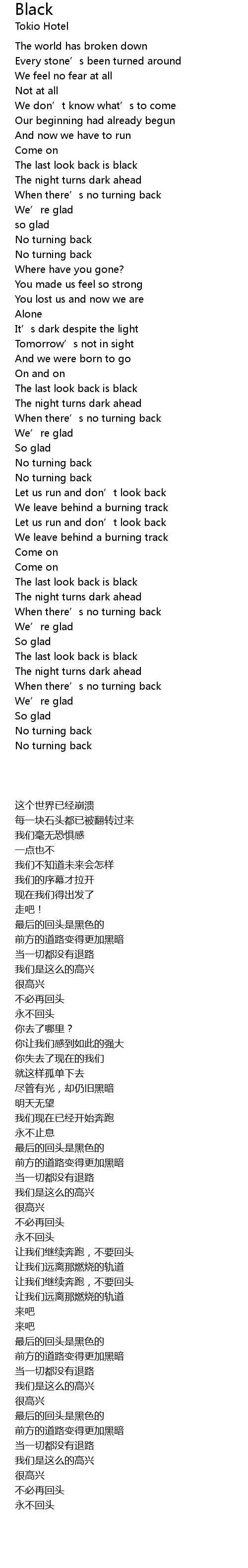 | [00:41.23] | The last look back is black |