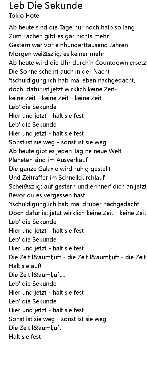 | [01:04.02] | keine Zeit - keine Zeit - keine Zeit |