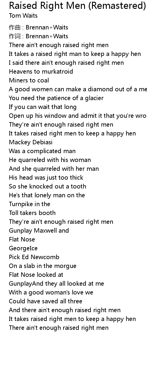 | And there ain't enough raised right men | |