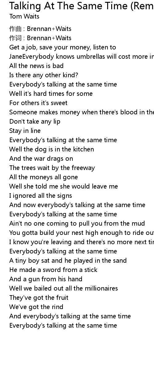 | Everybody' s talking at the same time | |
