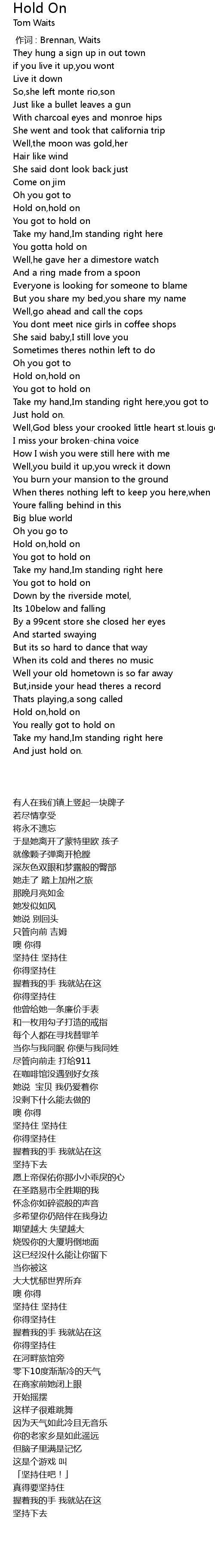 | [00:00.00] | 作词 : Brennan, Waits |