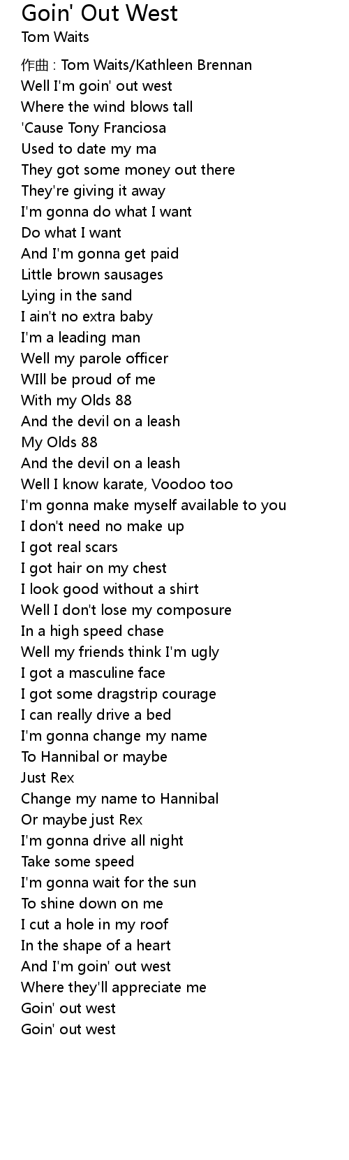 | Well I' m goin' out west | |