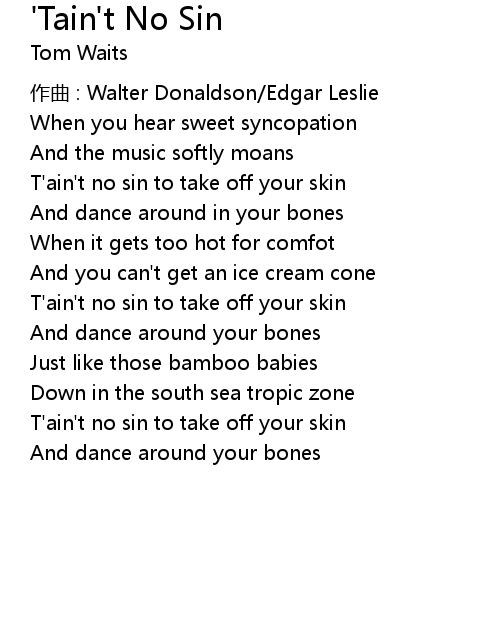 | T' ain' t no sin to take off your skin | |