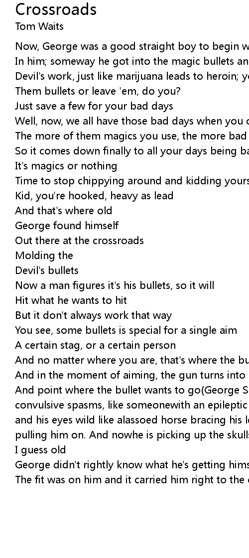 The fit was on him and it carried him right to the crossroads |