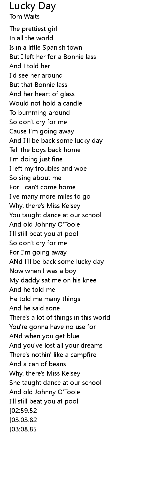 ANd I'll be back some lucky day |