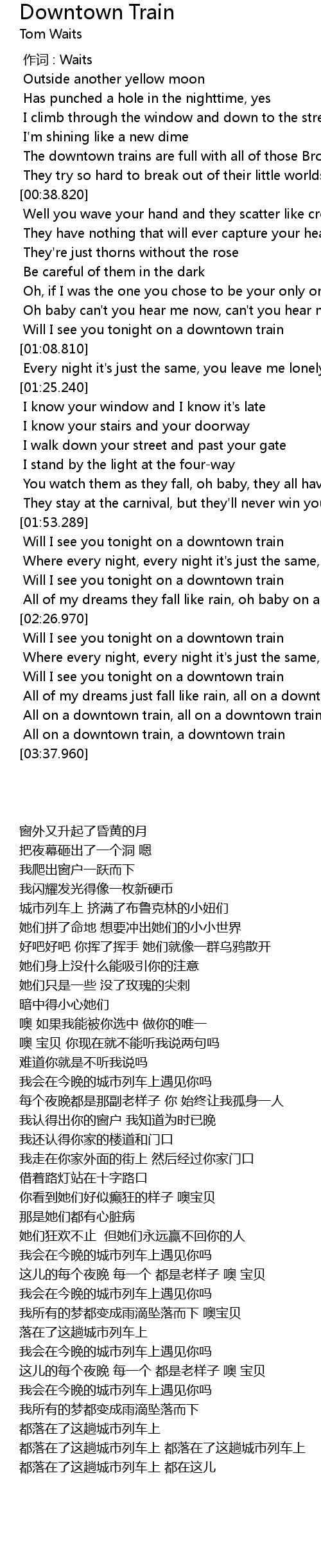 | [02:18.700] | All of my dreams they fall like rain, oh baby on a downtown train |