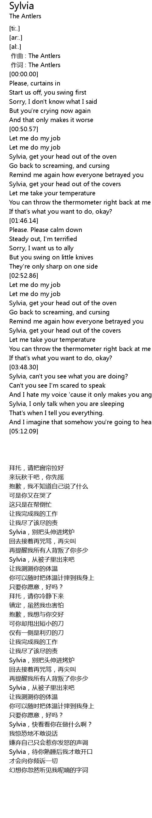 | [04:49.79] | Sylvia, I only talk when you are sleeping |