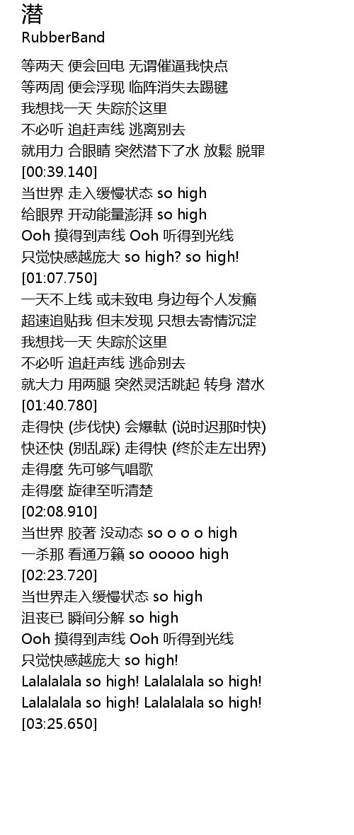 | [02:24.820] | 当世界走入缓慢状态 so high |