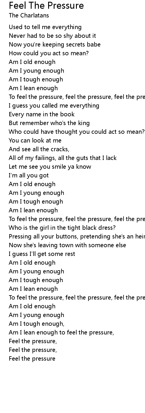 To feel the pressure, feel the pressure, feel the pressure, feel the pressure |