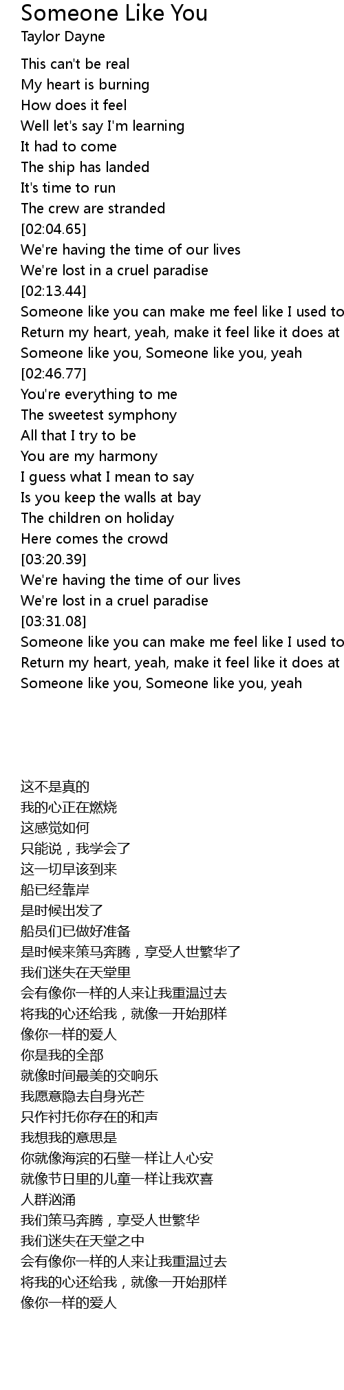 Someone like you, Someone like you, yeah |