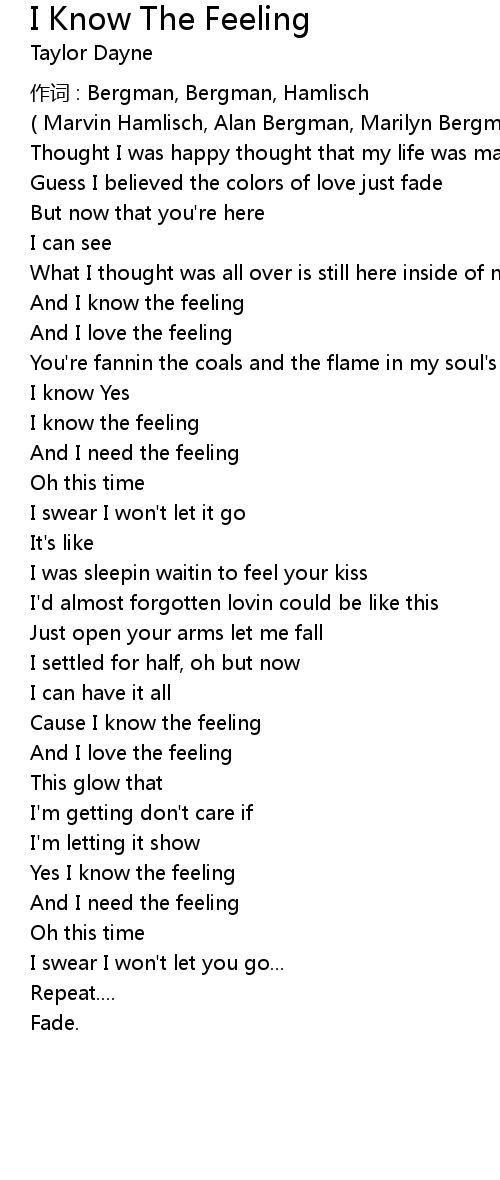 | Cause I know the feeling | |