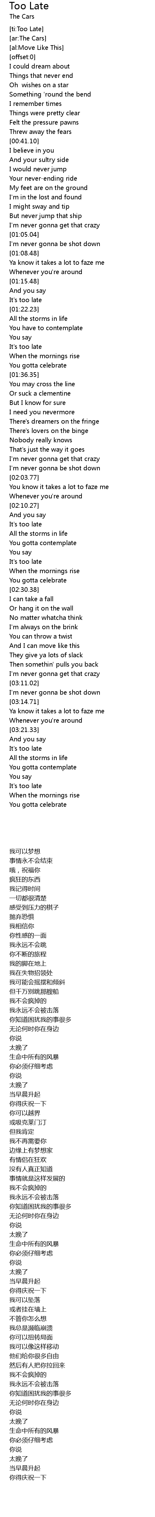 [ti:Too Late] |