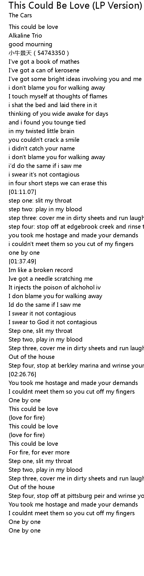 | [01:17.60] | step three: cover me in dirty sheets and run laughing out of the house |