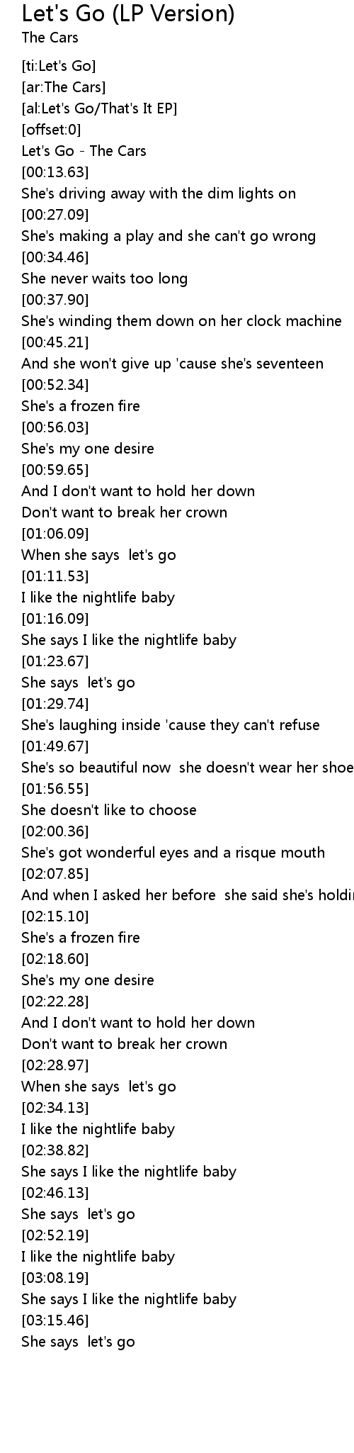 | [01:51.61] | She's so beautiful now she doesn't wear her shoes |