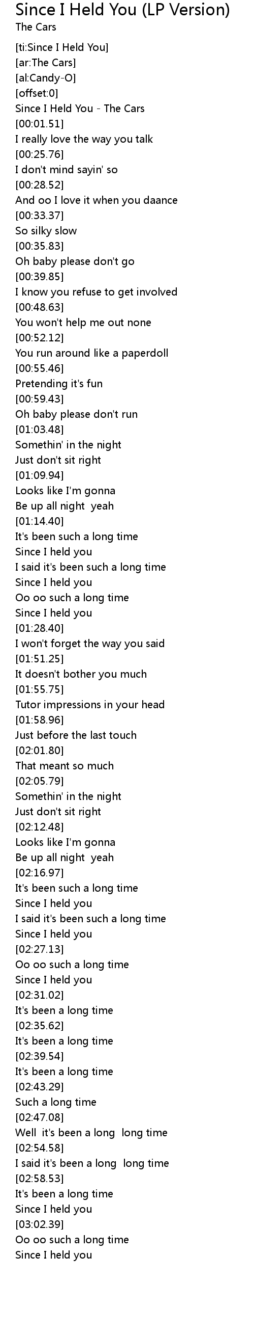 | [00:00.26] | Since I Held You - The Cars |