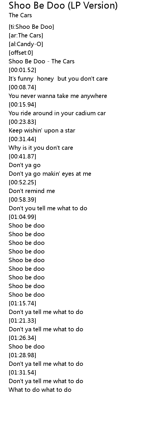 | [00:00.47] | Shoo Be Doo - The Cars |