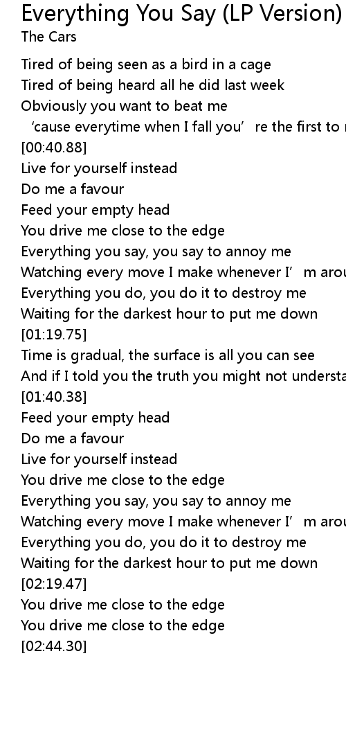 | [01:08.67] | Everything you do, you do it to destroy me |