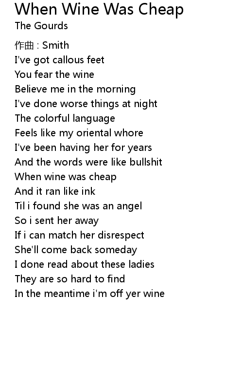 | Song | When Wine Was Cheap |