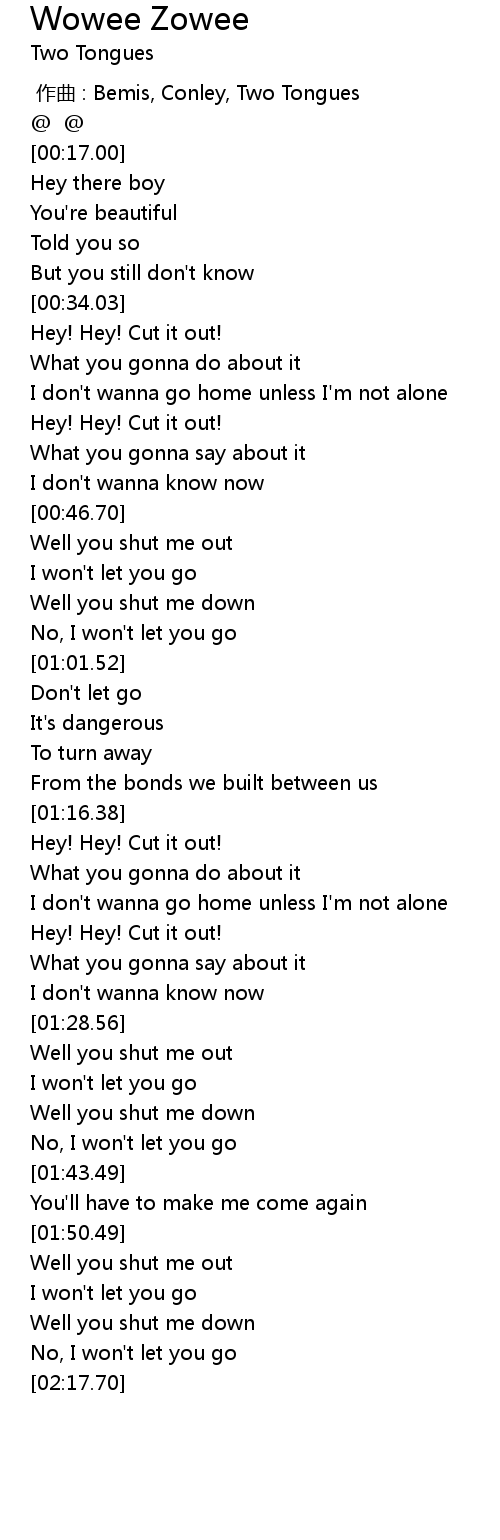 | [00:00.00] | 作曲 : Bemis, Conley, Two Tongues |