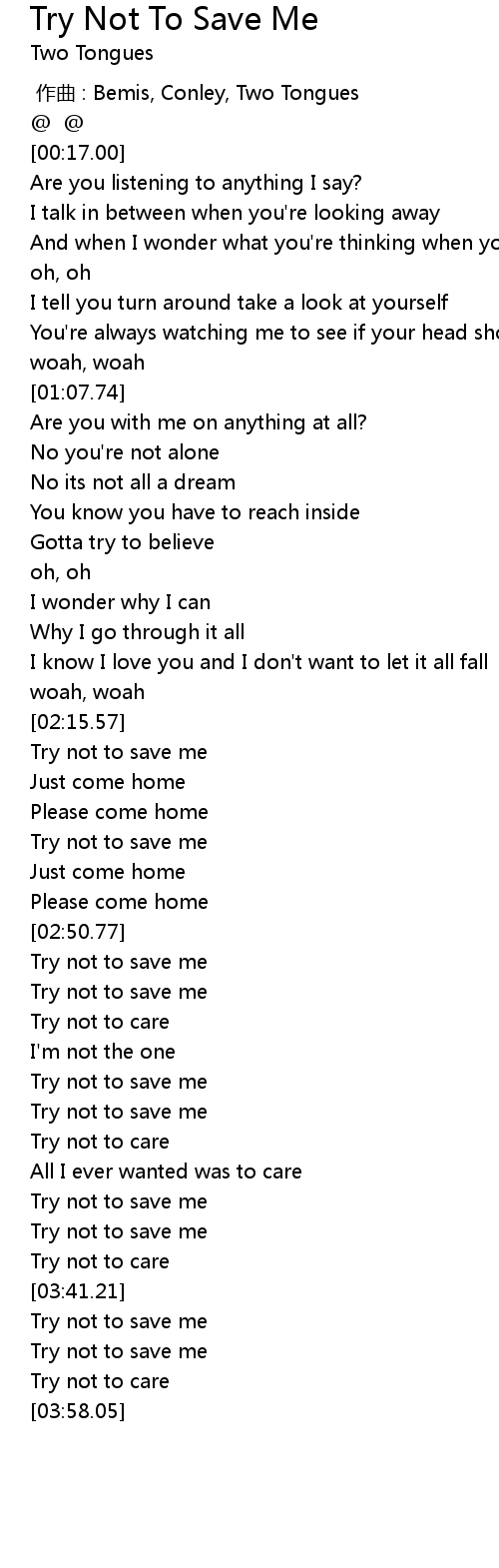 | [02:52.97] | Try not to save me |