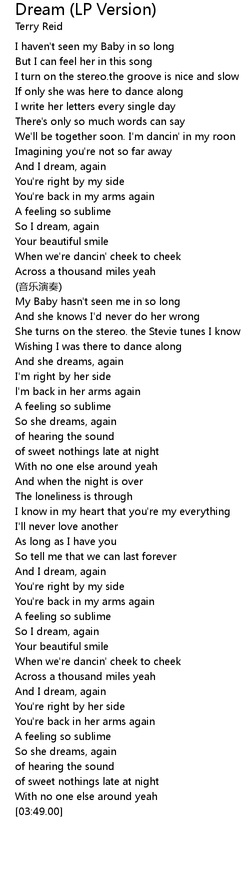 | [01:40.00] | My Baby hasn' t seen me in so long |