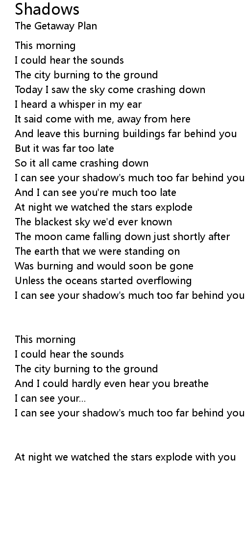 I can see your shadow's much too far behind you |