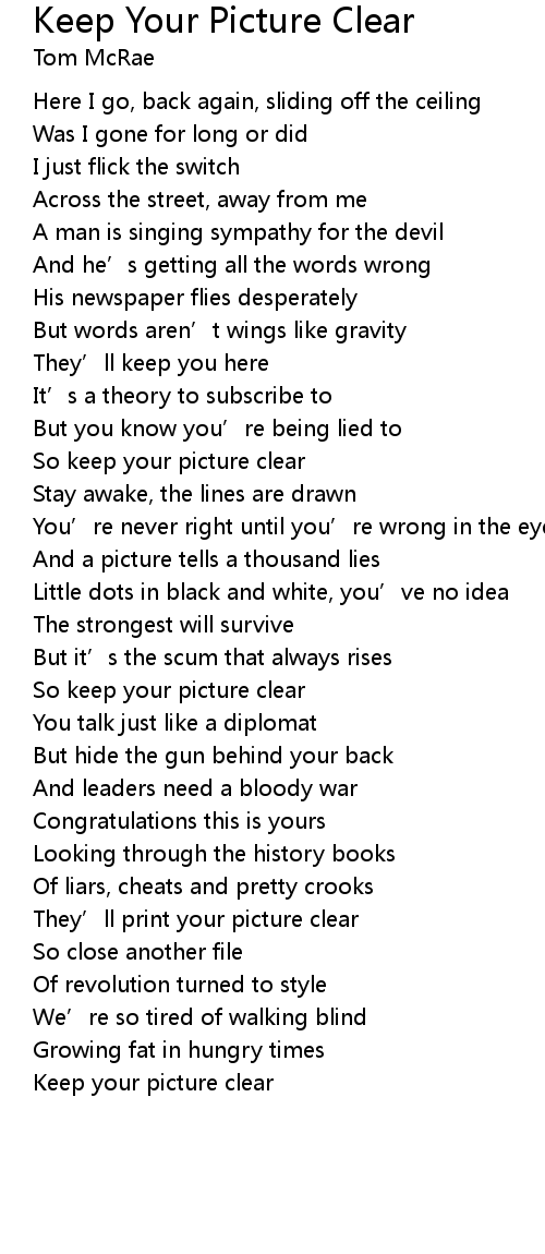 | Song | Keep Your Picture Clear |