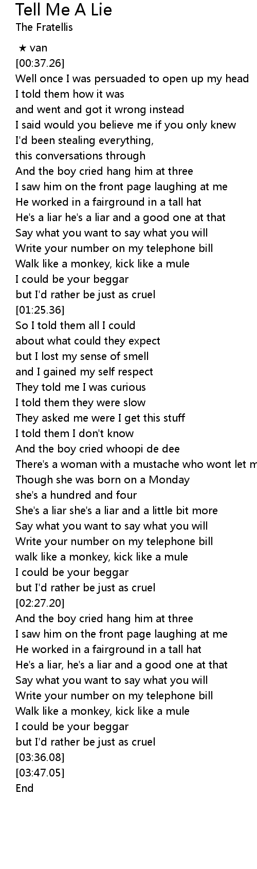 | [03:15.55] | He's a liar, he's a liar and a good one at that |