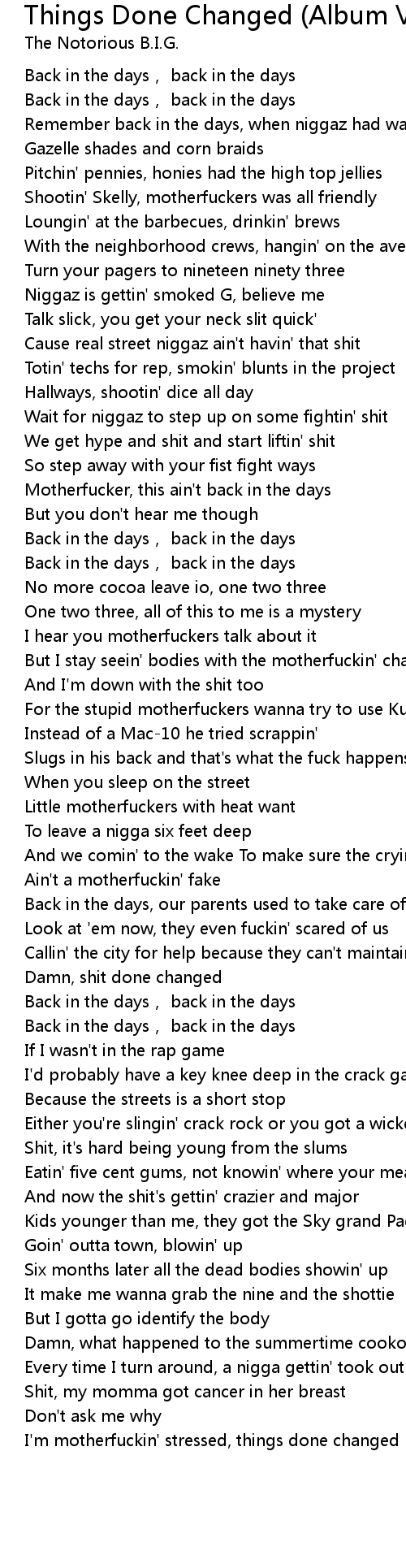 | Song | Things Done Changed (Album Version) |