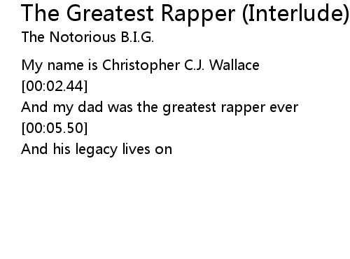 | [00:00.33] | My name is Christopher C.J. Wallace |