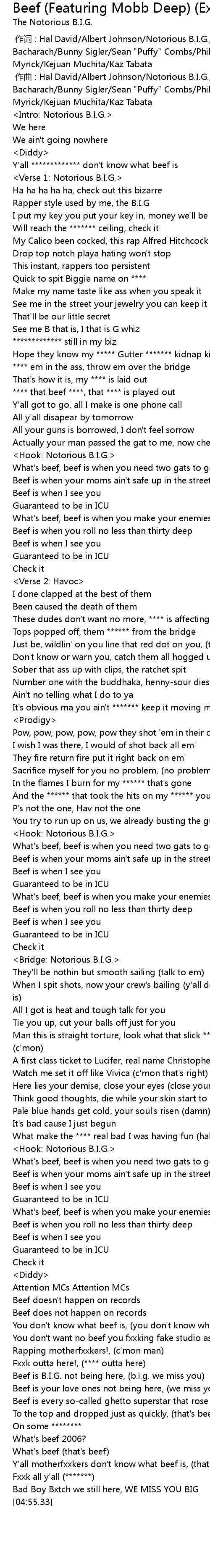 | Song | Beef (Featuring Mobb Deep) (Explicit Album Version) |