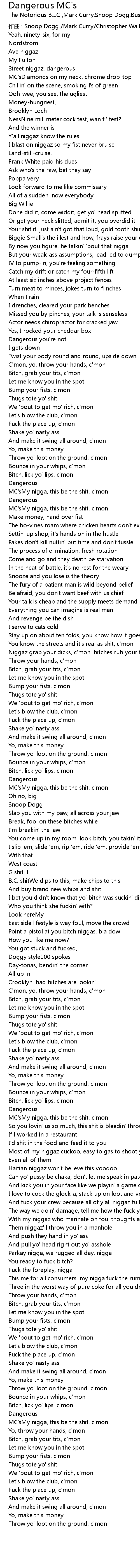 | 作曲 : Snoop Dogg /Mark Curry/Christopher Wallace/Trevor Smith | |