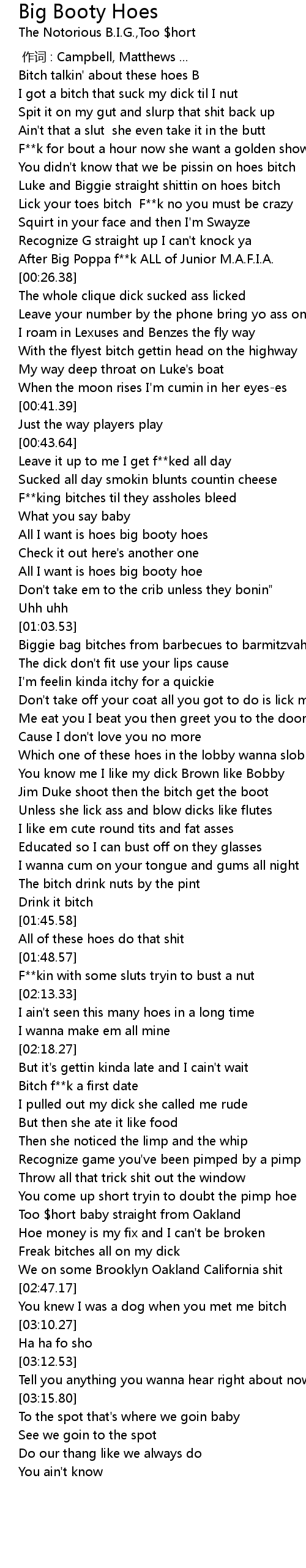 | [00:15.47] | Luke and Biggie straight shittin on hoes bitch |