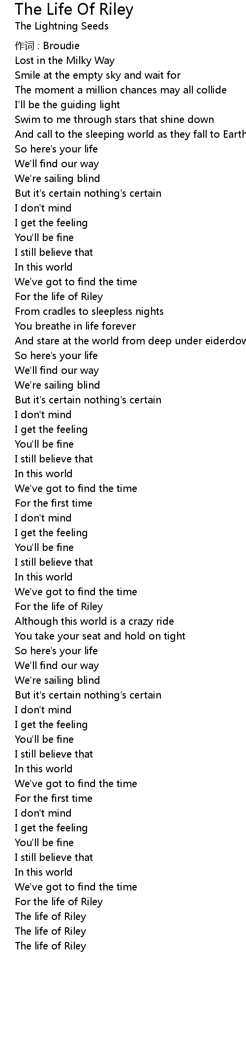 | Song | The Life Of Riley |