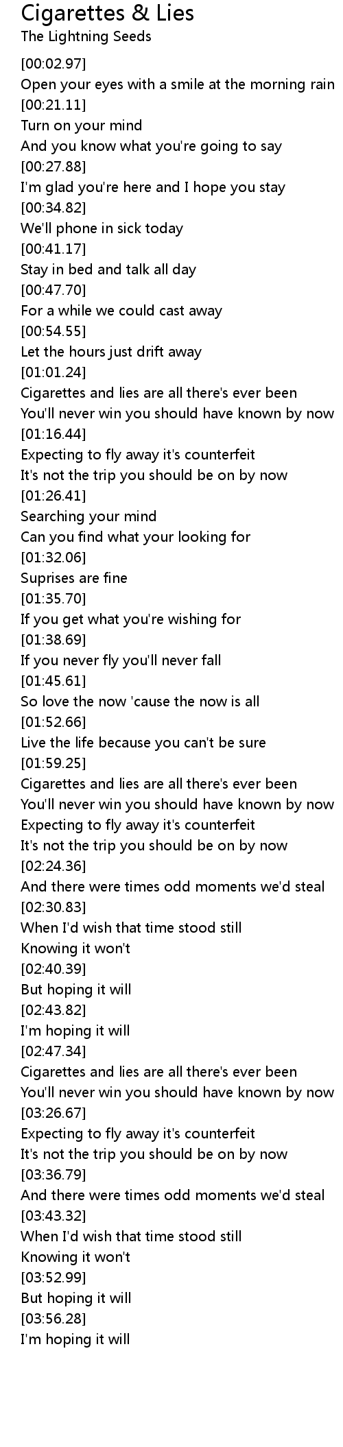 Cigarettes and lies are all there's ever been |