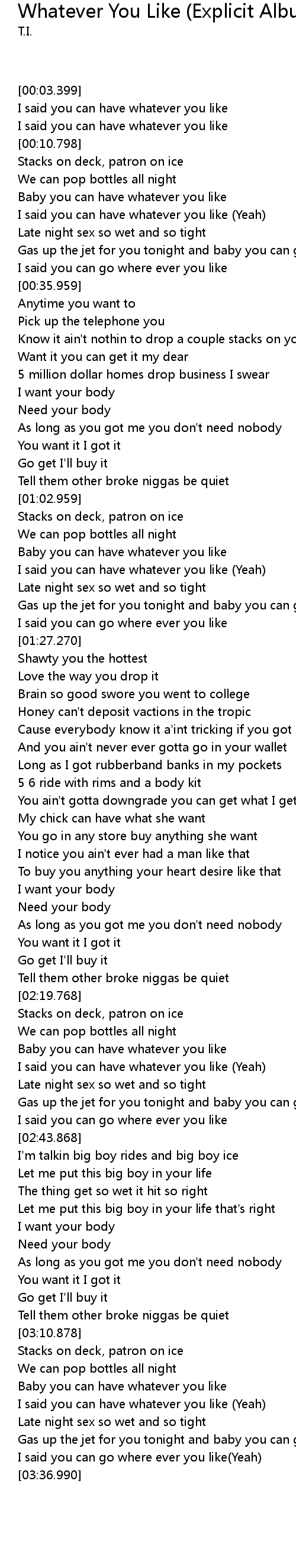 | [03:16.378] | Baby you can have whatever you like |