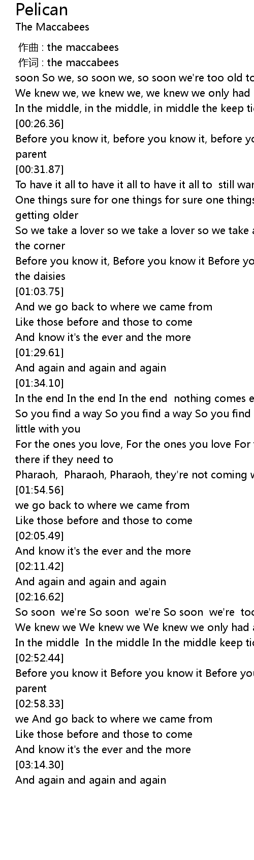 | [02:37.71] | So soon we're So soon we're So soon we're too old to carry |