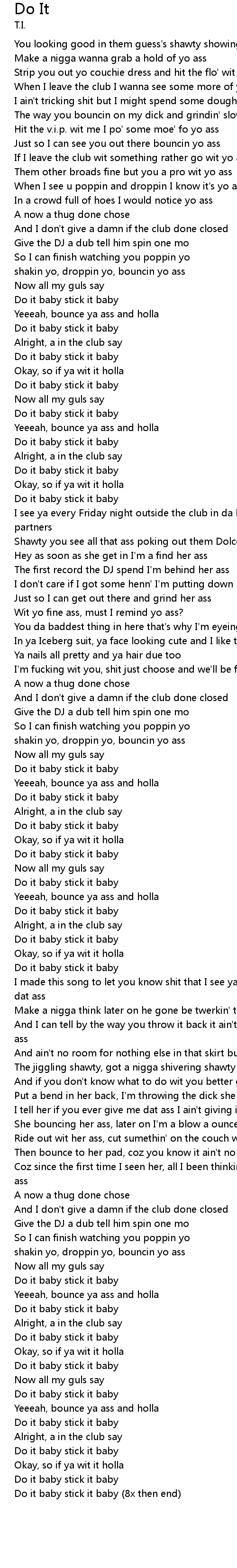 When I leave the club I wanna see some more of yo ass |
