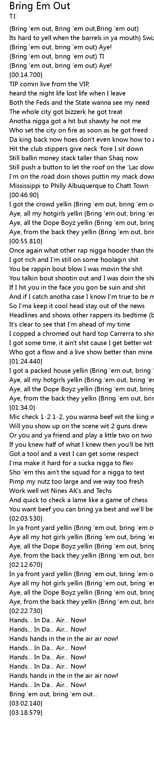 (Bring 'em out, bring 'em out) TI |