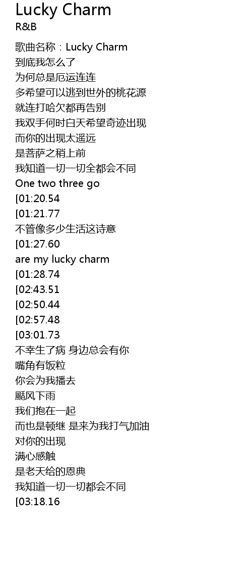 | [00:00.90] | gē qǔ míng chēng: Lucky Charm |