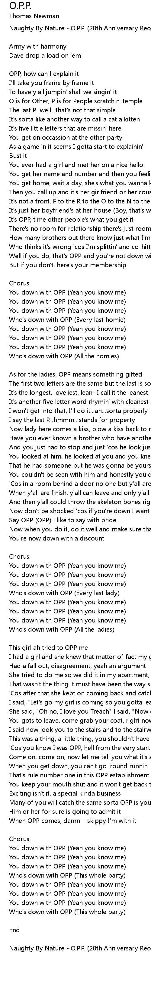 Who's down with OPP (Every last homie) |