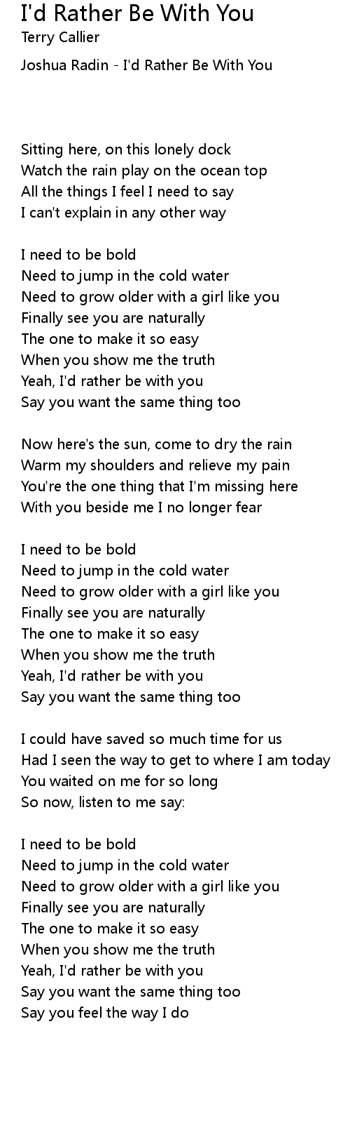 Yeah, I'd rather be with you |