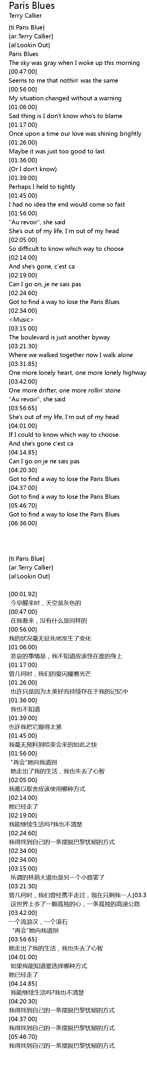 [ti:Paris Blue] |