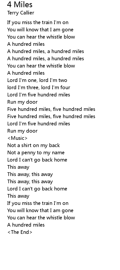 Five hundred miles, five hundred miles |