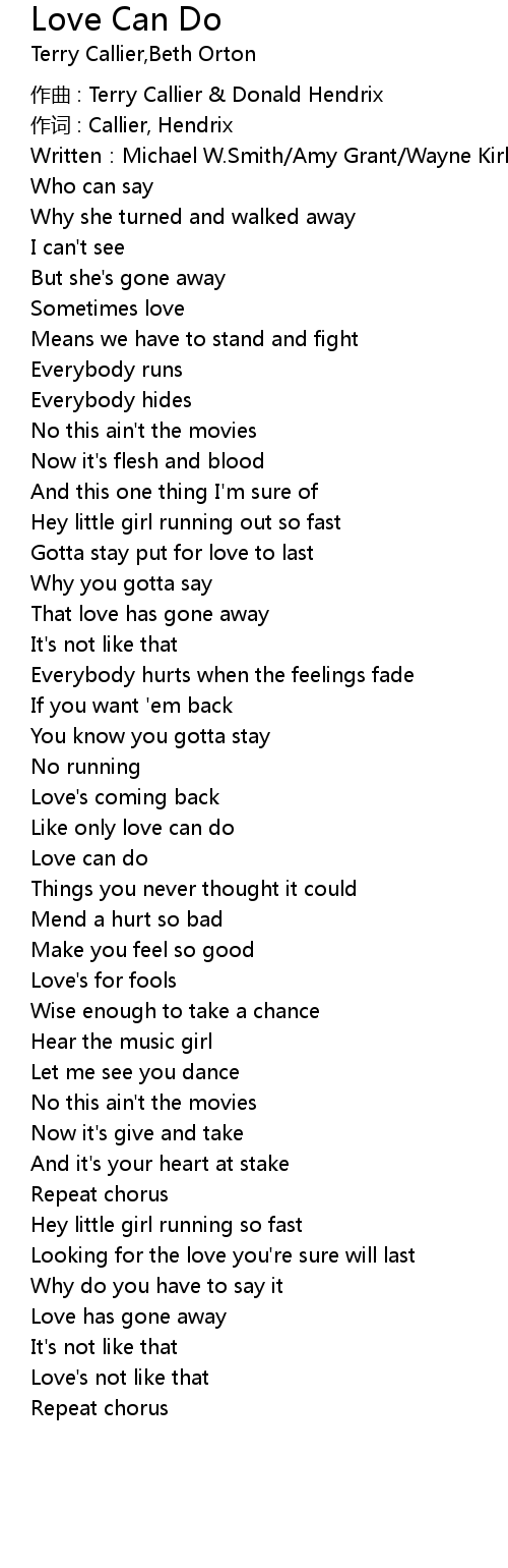 | Written:Michael W.Smith/Amy Grant/Wayne Kirkpatrick | |