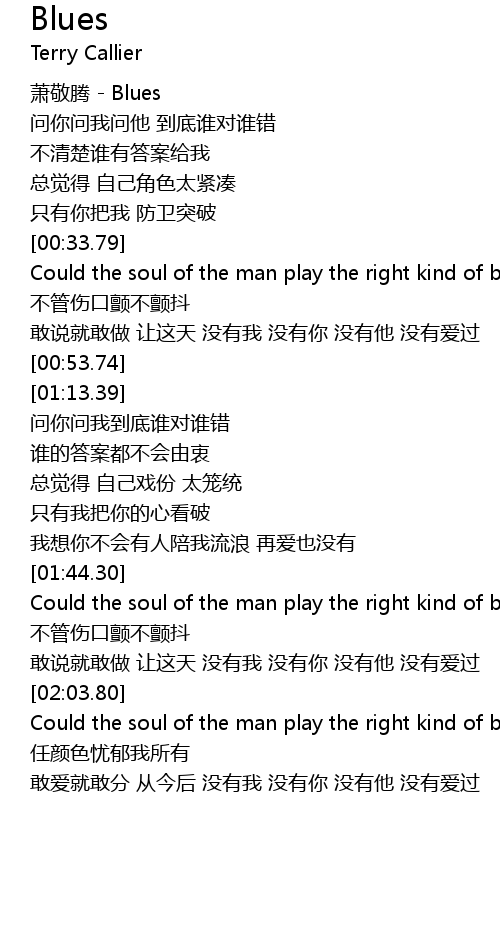 | [00:34.80] | Could the soul of the man play the right kind of blues |