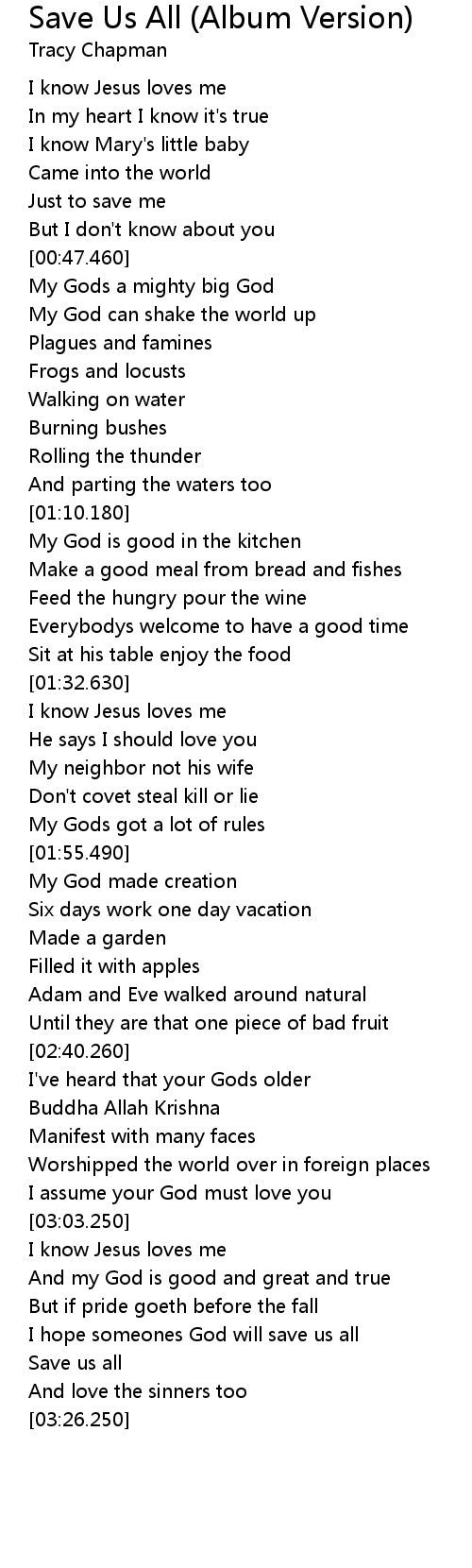 | [03:04.330] | I know Jesus loves me |