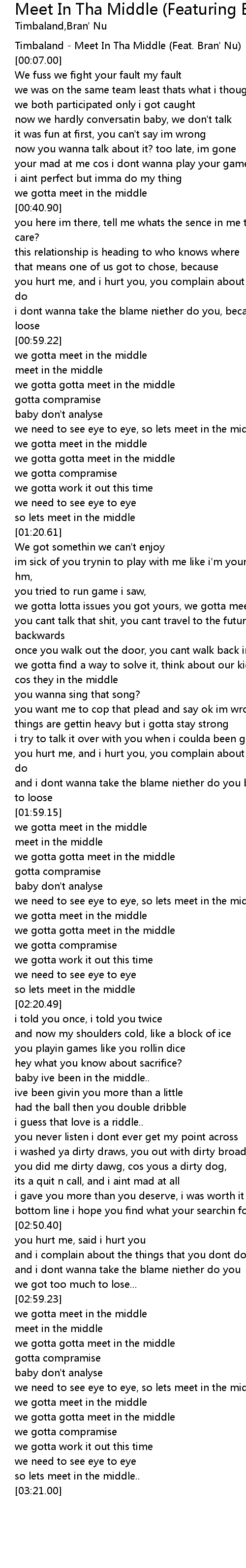 | [00:00.00] | Timbaland - Meet In Tha Middle (Feat. Bran' Nu) |