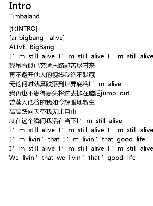 | [00:34.985] | I ’m still alive I ’m still alive I ’m still alive |