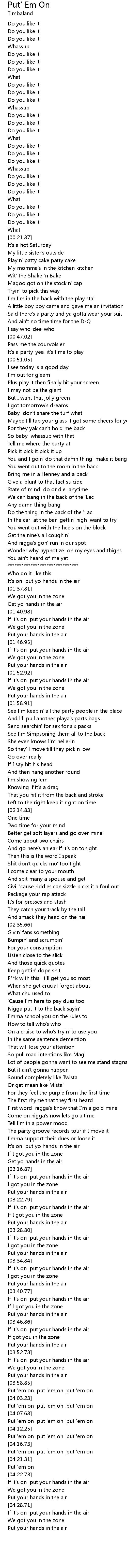 | [03:59.62] | Put 'em on put 'em on put 'em on |